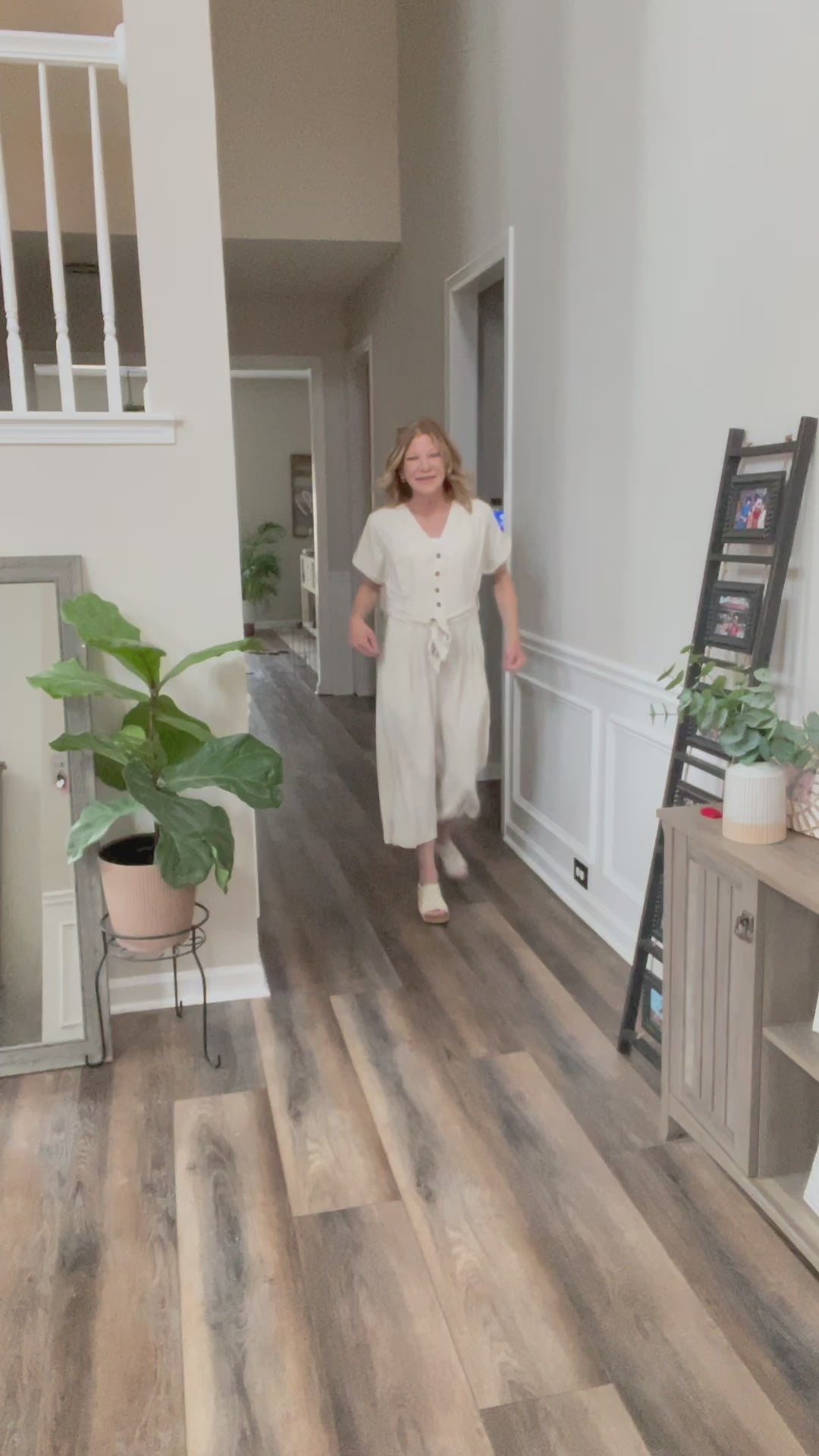 Welcome Springtime with this Dolman Short Sleeve V-Neck Jumpsuit. It has functioning button in front with Pleat Details and Self-Tie.